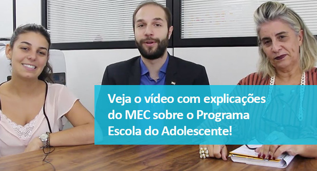 O Programa Escola do Adolescente foi lançado dia 27 de novembro com o objetivo de promover a melhoria da aprendizagem dos estudantes da última etapa do ensino fundamental (6º ao 9º ano). Para isso, atua na aproximação com os adolescentes, na formação de gestores e professores, no fortalecimento da gestão pedagógica e no apoio diferenciado para escolas vulneráveis. Entre 10 e 31 de dezembro, será possível as secretarias municipais de educação fazerem a adesão ao programa pelo site adolescente.mec.gov.br. Depois do registro da secretaria, entre 11 e 31 de dezembro, o sistema estará liberado também para as escolas.