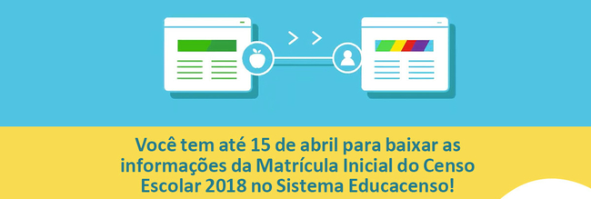 - O prazo para exportação da planilha no sistema do Educacenso é entre 4 de fevereiro e 20 de março e entre 1 e 15 de abril;
