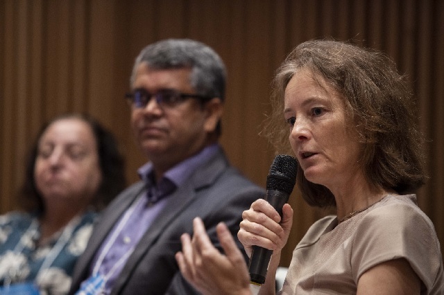 “Precisamos garantir que nenhuma criança ou adolescente tenha medo de chegar na escola, nem de permanecer e de aprender nela. Os setores de saúde, segurança, assistência social e sociedade civil devem trabalhar juntos para que a escola seja um lugar de proteção”, diz Florence Bauer (foto abaixo), representante do Unicef no Brasil, durante o seminário “Educação é Proteção contra a Violência”. O evento foi realizado pelo Unicef e pela Cidade Escola Aprendiz nos dias 17 e 18 de junho, no Rio de Janeiro, e contou com a presença de representantes da Undime, da sociedade civil e de grupos de jovens.
