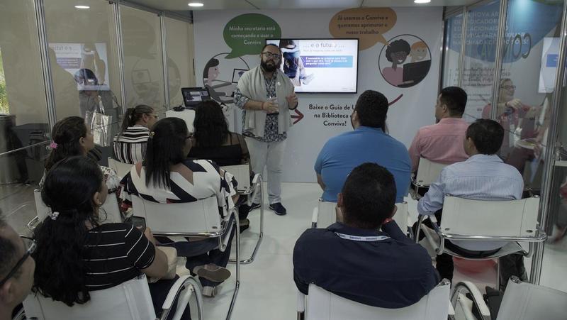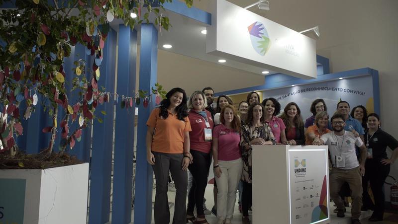 Durante o 17º Fórum Nacional dos Dirigentes Municipais de Educação, que ocorreu entre 13 e 16 de agosto na Bahia, a equipe do Conviva recebeu cerca de 500 pessoas no estande para atendimento personalizado com os articuladores, realizou 20 oficinas no aquário e quatro vídeos ao vivo. O projeto também estive na plenária anunciando a Ação de Reconhecimento e ficou responsável pelo minicurso sobre Relação Secretarias Municipais de Educação e escolas.
