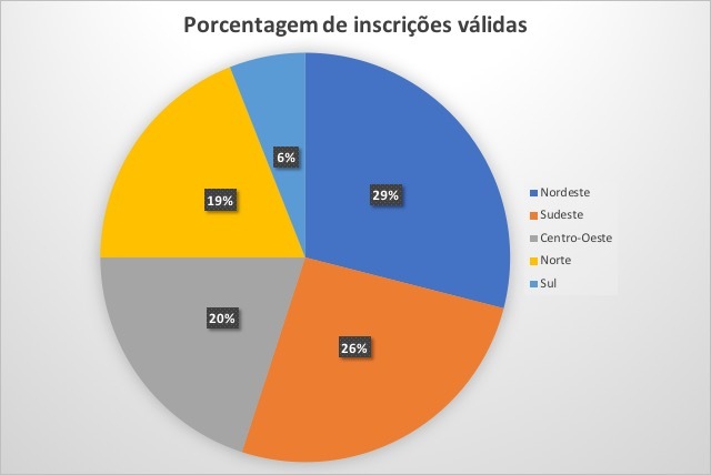 A distribuição geográfica também foi significativa (veja gráfico abaixo). Os estados com mais inscrições válidas (isso é, que passaram na triagem) e o número registrado em cada um deles foi: Mato Grosso do Sul (10 relatos), Espírito Santo (9), Amazonas (8), Bahia (7) e Rio de Janeiro (7).