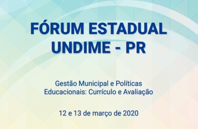 A Undime Paraná realiza nos dias 12 e 13 de março o Fórum Estadual da Seccional. O evento será na capital Curitiba, no Instituto de Engenharia do Paraná, de 8h às 17h30. Dirigentes Municipais de Educação, técnicos das secretarias e convidados debaterão, ao longo dos dois dias, assuntos relacionados à gestão da educação pública municipal.
