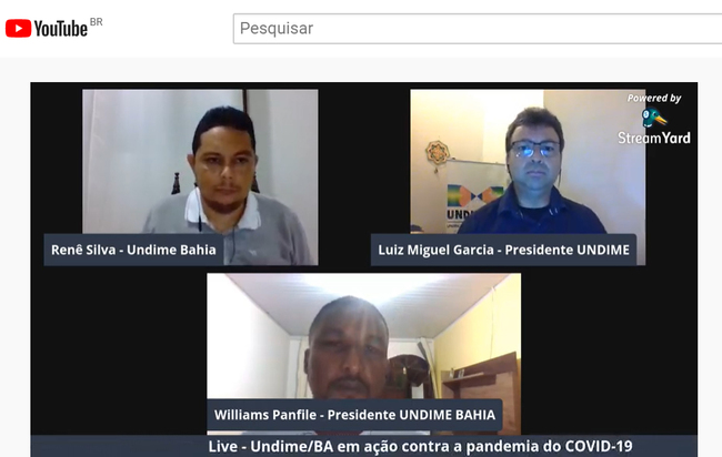 O convidado desta terça-feira (31) foi o presidente da Undime, Luiz Miguel Martins Garcia, Dirigente Municipal de Educação (DME) de Sud Mennucci (SP). A transmissão virtual foi conduzida pelo professor Renê Silva e pelo presidente da Undime Bahia, Williams Brandão, DME de Elísio Medrado (BA). Na oportunidade, Garcia falou ao público baiano assuntos que preocupam os dirigentes, como alimentação e transporte escolar, PDDE, flexibilização do calendário escolar, entre outros.