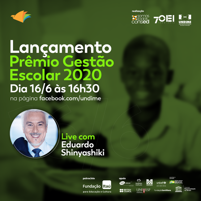 Título original: Prêmio de Gestão Escolar 2020 será lançado na próxima terça em live com Eduardo Shinyashiki
