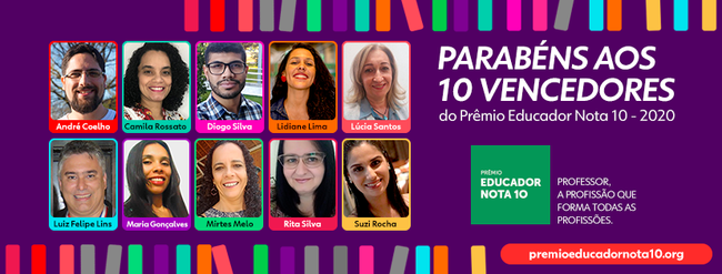 Os dez vencedores do Prêmio Educador Nota 10 foram anunciados na última segunda-feira, 20 de julho. Os vencedores representam Amazonas, Bahia, Distrito Federal, Pernambuco, São Paulo e Rio de Janeiro. Dos 10 projetos campeões, cinco são trabalhos realizados com alunos do Ensino Fundamental (somando anos iniciais e finais), três com turmas do Ensino Médio, um de gestão e outro com crianças bem pequenas. Já entre as disciplinas, são dois projetos de Língua Portuguesa, um trabalho de gestão escolar e um com crianças bem pequenas. Completam a lista iniciativas de Artes, Educação Física, Filosofia, Matemática, Geografia e Física.