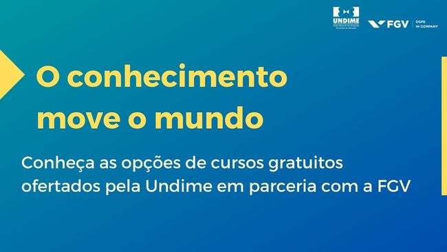 O conhecimento move o mundo. A partir dessa premissa, Undime e a Fundação Getúlio Vargas (FGV) disponibilizam gratuitamente e sem limite de vagas, cursos de média e curta duração, nas áreas de educação, administração pública, economia e finanças, estratégia e negócios, marketing e vendas, relações internacionais, tecnologia, entre outras.