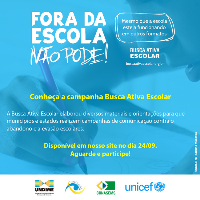 Título original: Busca Ativa Escolar divulga data de lançamento da campanha de comunicação contra o abandono e a evasão escolares