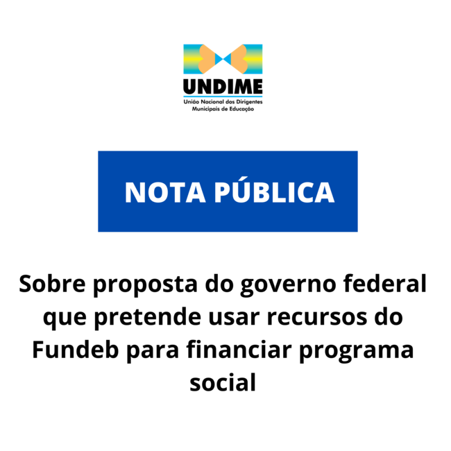 Título original: Undime se manifesta sobre proposta do governo federal que pretende usar recursos do Fundeb para financiar programa social