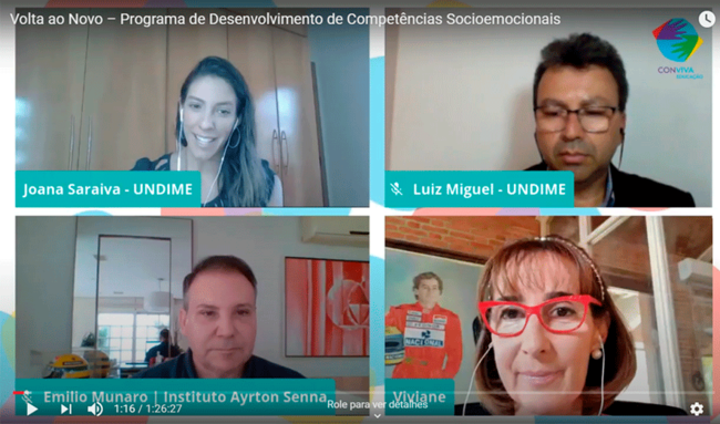 No encontro de lançamento, que contou com a participação de dirigentes municipais de educação, membros das equipes técnicas das secretarias municipais de educação e professores e demais profissionais da educação, participaram Viviane Senna, presidente do Instituto Ayrton Senna, Emílio Munaro, vice-presidente de Desenvolvimento Global e Comunicação do Instituto, e Luiz Miguel Martins Garcia, presidente da Undime e Dirigente Municipal de Educação de Sud Mennucci (SP). “Professor e escola não abandonaram alunos, e a Undime não abandona os dirigentes municipais; tivemos que pensar em como fazer a educação seguir acontecendo no Brasil”, disse Luiz Miguel. “Logo ficou evidente para nós a importância do cuidar para além das questões pedagógicas, e sim do socioemocional, pois todos estamos sendo impactados”, ressaltou.