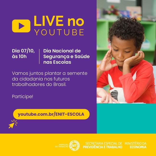 A transmissão será pelo canal da Escola Nacional da Inspeção do Trabalho, no YouTube (youtube.com/enit-escola).