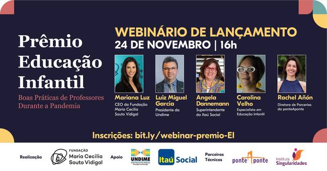 Pensando nisso, a Fundação Maria Cecilia Souto Vidigal, a União Nacional dos Dirigentes Municipais de Educação (Undime) e a Fundação Itaú Social uniram-se para lançar o Prêmio Educação Infantil: boas práticas de professores durante a pandemia, com o objetivo de impulsionar e lançar luz sobre o trabalho realizado com as crianças e famílias e formar um banco de boas práticas, amplificando o alcance das soluções e os aprendizados adquiridos neste momento atípico.