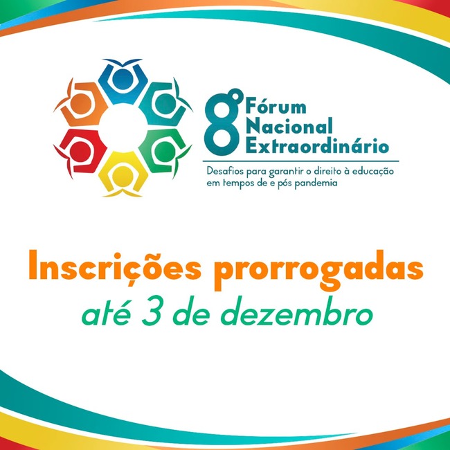 As inscrições para o 8º Fórum Nacional Extraordinário dos Dirigentes Municipais de Educação foram prorrogadas! O prazo, que se encerraria nesta segunda-feira, 30 de novembro, foi estendido. Com a mudança, dirigentes, técnicos de secretarias e educadores de municípios adimplentes com a Undime (ano referência 2020) têm até o dia 3 de dezembro, quinta-feira, para realizar a inscrição.