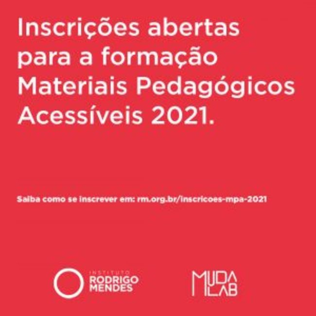 As inscrições para o projeto Materiais Pedagógicos Acessíveis (MPA) 2021 estão abertas e podem ser feitas até o dia 01 de março. O objetivo geral da formação é contribuir na construção de materiais pedagógicos acessíveis que auxiliem o processo de ensino-aprendizagem de todos estudantes, com e sem deficiência, nas classes comuns. A proposta parte de uma perspectiva educacional integral e inclusiva, no contexto desafiador da implementação de currículos articulados à Base Nacional Comum Curricular (BNCC). A formação é realizada pelo Instituto Rodrigo Mendes (IRM) e pelo MudaLab, com a parceria do Instituto Credit Suisse Hedging-Griffo.