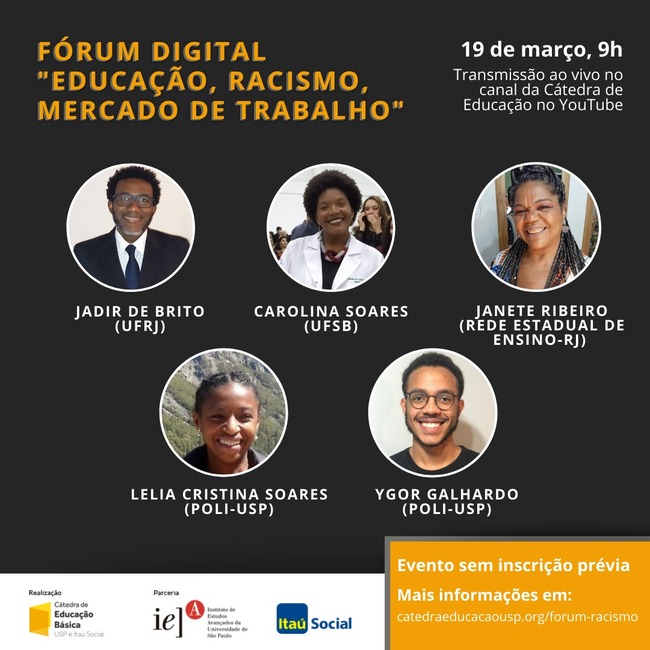 Título original: Fórum digital discutirá sobre racismo nos âmbitos de educação e mercado de trabalho