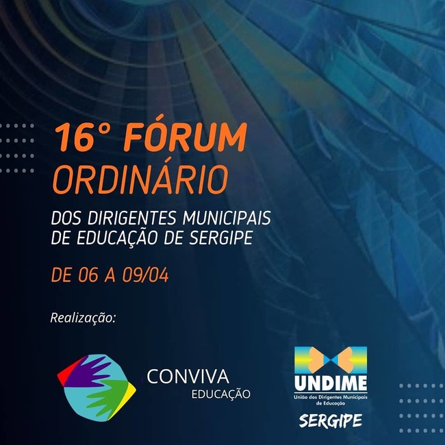 Undime Sergipe realizará seu 16º Fórum Ordinário dos Dirigentes Municipais de Educação  nos dias 6, 7, 8 e 9 de abril de 2021, em ambiente virtual, por meio da plataforma Google Meet.