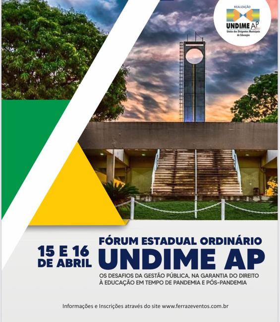 Nos dias 15 e 16 de abril, a Undime Amapá realizará seu Fórum Estadual Ordinário. Tendo como tema “Os desafios da gestão pública na garantia do direito à educação em tempo de pandemia e pós pandemia”, o intuito do evento é fomentar e debater as Políticas Públicas Educacionais, orientar os gestores municipais, equipes técnicas e profissionais da educação para a execução de ações e programas, além de eleger os novos representantes para o biênio 2021-2023.
