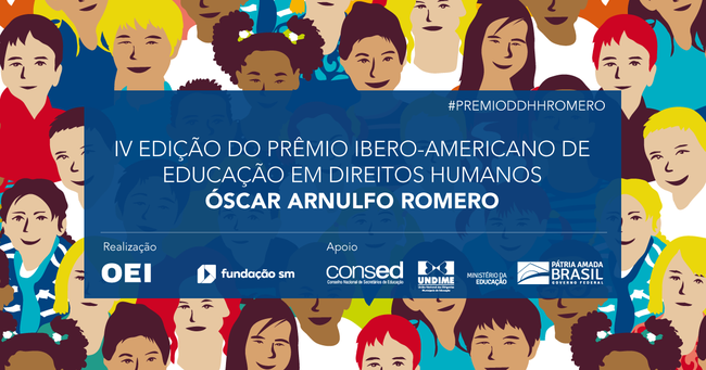 A Organização de Estados Ibero-americanos para a Educação, a Ciência e a Cultura – OEI, com a colaboração da Fundação SM e apoio da União Nacional dos Dirigentes Municipais de Educação (Undime), do Conselho Nacional de Secretários de Educação (Consed) e Ministério da Educação lançam, por meio do Instituto Ibero-americano de Educação em Direitos Humanos - IDEDH, a quarta edição do Prêmio Ibero-Americano de Educação em Direitos Humanos "Óscar Arnulfo Romero".