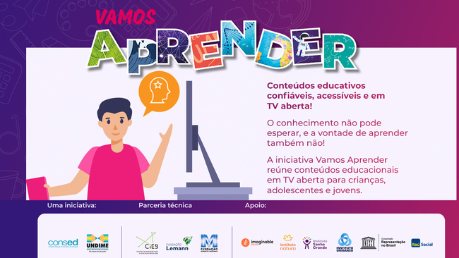 O projeto Vamos Aprender disponibiliza, gratuitamente, programas educativos para redes públicas estaduais e municipais com conteúdo dirigido a estudantes de todas as etapas da educação básica.