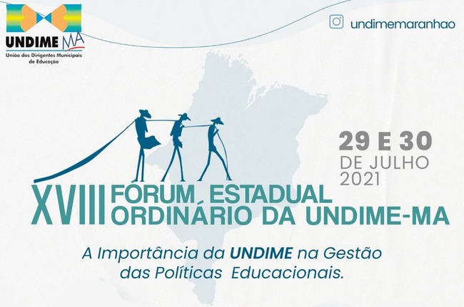 A Undime Maranhão realizará seu 18º Fórum Estadual na próxima quinta e sexta-feira (29 e 30 de julho). De forma presencial e com público reduzido, para respeitar o distanciamento social, o evento que será exclusivo para os Dirigentes Municipais de Educação, recebe como tema “A Importância da Undime na Gestão das Políticas Educacionais”.