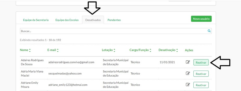 Esses usuários continuarão na aba de desativados porém não terão mais acesso a plataforma. Caso o usuário volte a fazer parte do quadro da secretaria basta reativar o cadastro.