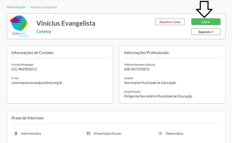 > Apenas um representante de cada escola poderá estar cadastrado no Conviva, caso seja necessária a atualização de sua lotação entre em contato com o usuário principal de sua secretaria ou com nossos canais de suporte;