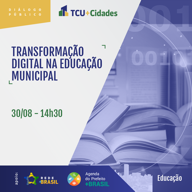 O Tribunal de Contas da União realiza evento online, na próxima segunda-feira, 30 de agosto. Chamado de Diálogo Público – Transformação Digital na Educação Municipal, o objetivo é abordar as oportunidades e desafios da oferta de infraestrutura e tecnologias no retorno às aulas presencias e discutir a adoção do modelo híbrido. O debate começa às 14h30 e vai ser transmitido pelo Canal Oficial do TCU no Youtube.