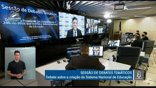 O vice-presidente da Undime e Dirigente Municipal de Educação de Senador Canedo/GO, Marcelo Ferreira da Costa, participou da sessão de debates temáticos para discutir o Projeto de Lei Complementar (PLP) 235/2019, que institui o Sistema Nacional de Educação (SNE). A sessão no Plenário virtual para tratar da proposta aconteceu na manhã de sexta-feira (3) e foi solicitada por requerimento dos senadores Dário Berger (MDB-SC) e Flávio Arns (Podemos-PR).