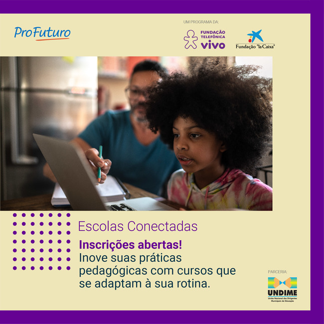 Com objetivo de apoiar a formação continuada dos educadores, a Undime em parceria com a Fundação Telefônica Vivo oferece cursos online da plataforma Escolas Conectadas.