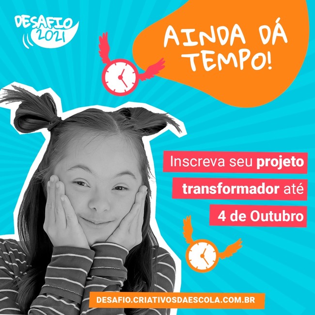 Título original: Desafio Criativos da Escola 2021: últimos dias para realizar a inscrição
