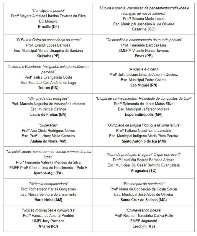 Título original: Olimpíada de Língua Portuguesa divulga lista de finalistas com professores de 23 Estados