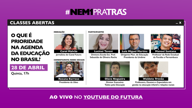 A data será marcada com o encontro online “Classes Abertas”, no YouTube do Canal Futura, das 17h às 19h