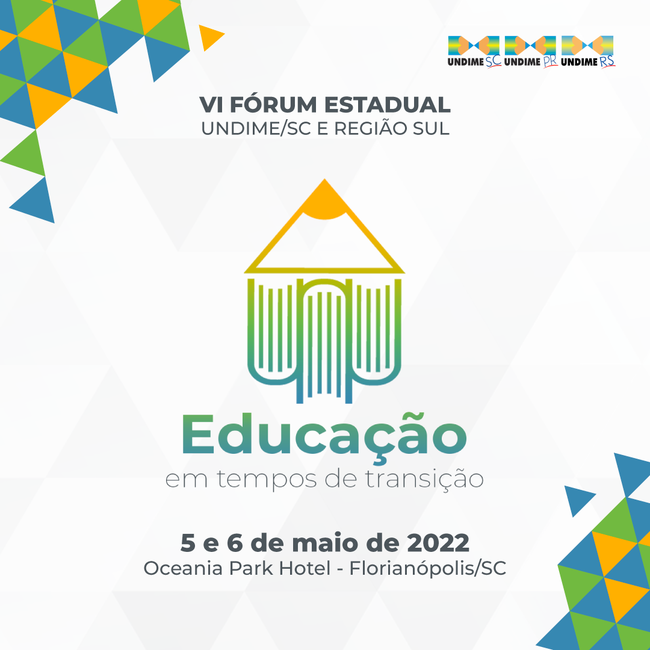 O 6° Fórum Estadual Undime/SC e Região Sul ocorre nos dias 5 e 6 de maio, em Florianópolis, com participação do ministro da Educação, Victor Godoy, que fará o anúncio de um programa inédito voltado à educação infantil. Reunindo mais de 750 participantes, entre dirigentes municipais de educação, técnicos de secretarias e demais educadores de Santa Catarina, Paraná e Rio Grande do Sul, o fórum promoverá diálogos sobre assuntos pertinentes ao cenário educacional, como Gestão Democrática (eleição de diretores), Fundeb e piso do magistério.
