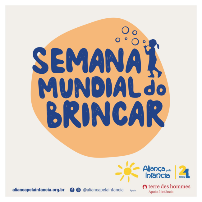 Com o tema “Confiar na força do Brincar”, de 21 a 29 de maio, acontece a 13ª edição da Semana Mundial do Brincar (SMB). Realizada pela Aliança pela Infância, a SMB é uma campanha de sensibilização sobre a importância do brincar, do direito da criança a ter infância e da necessidade do direito da criança ao brincar ser respeitado.