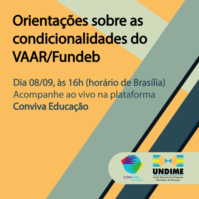 No dia 8 de setembro, próxima quinta-feira, o Conviva Educação realizará a videoconferência Orientações sobre as condicionalidades do VAAR/Fundeb. A transmissão será às 16 horas (horário de Brasília) e é aberta ao público.