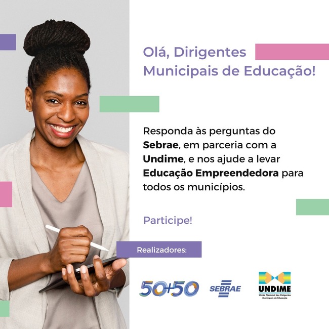 A Undime e o Sebrae Nacional estão preparando um mapeamento com as Secretarias Municipais de Educação acerca da implantação da Educação Empreendedora nos municípios de todo o país. Os dados obtidos serão utilizados para diagnóstico territorial, estadual e nacional, a fim de potencializar as parcerias entre Sebrae e Undime, visando a melhoria da qualidade da educação brasileira.