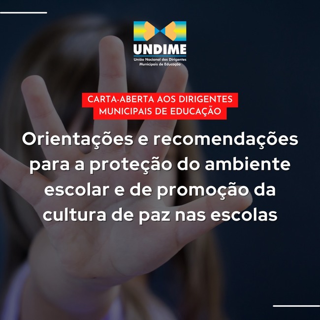 Nesta semana, a Undime publicou carta-aberta aos dirigentes municipais de educação com orientações e recomendações para a proteção do ambiente escolar e de promoção da cultura de paz nas escolas.