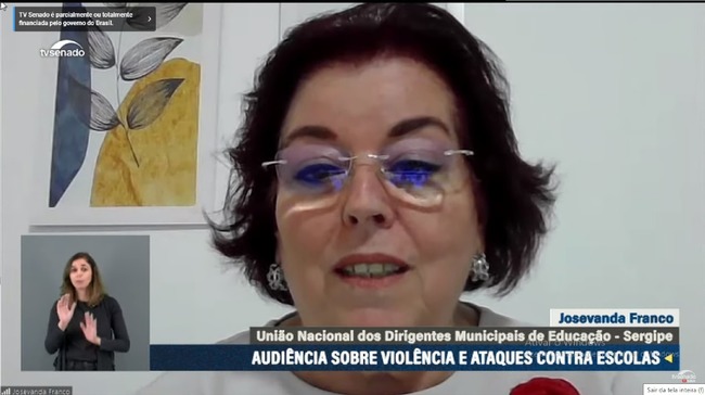 Nessa quarta-feira (26), a Undime foi representada pela presidente da Seccional Sergipe, Josevanda Franco, Dirigente Municipal de Educação de Nossa Senhora do Socorro/SE, na segunda audiência pública do ciclo de debates da Comissão de Educação, Cultura e Esporte do Senado Federal, para debater a violências nas escolas. Mediada pela senadora Tereza Leitão (PT/PE), o debate teve o objetivo de discutir as propostas de melhoria da segurança escolar e de prevenção a ataques contra instituições de ensino, à luz do exame do Projeto de Lei n° 2256, de 2019, que altera a Lei nº 9.394, de 20 de dezembro de 1996 (Lei de Diretrizes e Bases de Educação), para dispor sobre normas gerais de segurança escolar.