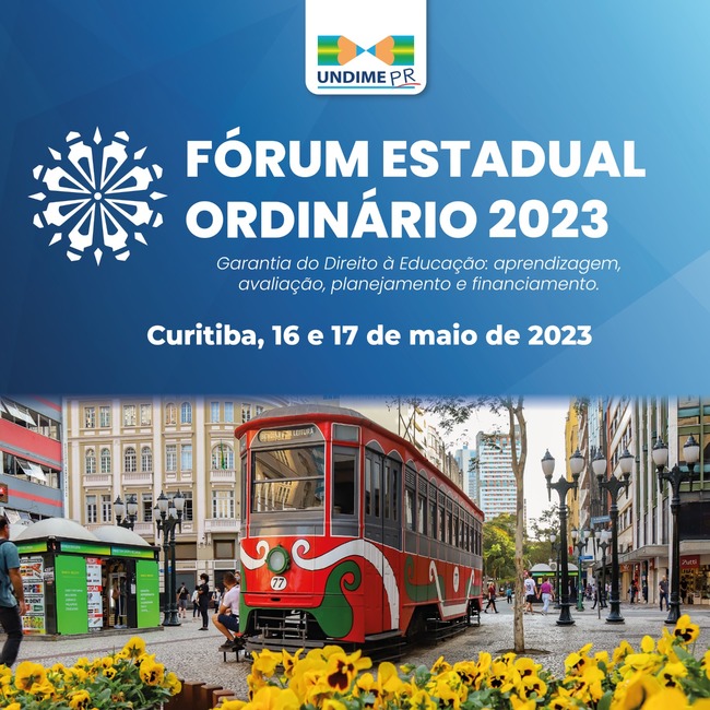 A Undime Paraná realiza, nos dias 16 e 17 de maio, o Fórum Estadual Ordinário da Seccional. O evento será realizado em Curitiba/PR com o tema "Garantia do direito à Educação: aprendizagem, avaliação, planejamento e financiamento".