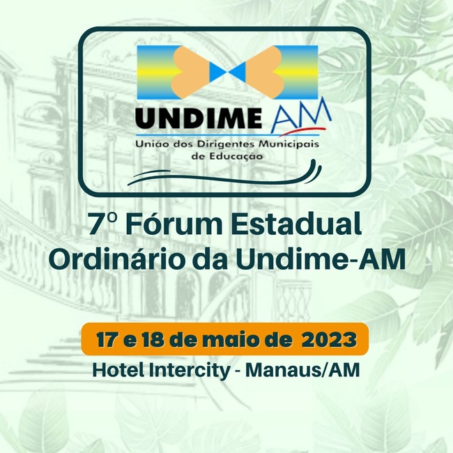 O Fórum Estadual da Undime Amazonas já tem data marcada. O evento vai acontecer nos dias 17 e 18 de maio, em Manaus, com o tema: “Fortalecimento de Políticas Educacionais para uma gestão pública que garanta a inclusão, equidade, inovação e qualidade na educação municipal.
