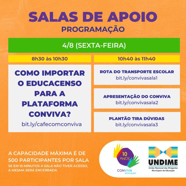 No dia 04 de agosto de 2023, das 08h30 até às 10h30, teremos mais um encontro sobre como importar o educacenso para a plataforma Conviva Educação.