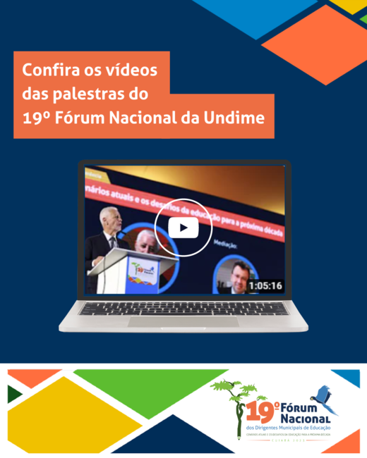 Já estão disponíveis, no canal da Undime no Youtube, os vídeos com as palestras realizadas durante o 19º Fórum Nacional dos Dirigentes Municipais de Educação. Para facilitar a busca e a visualização, foi criada uma playlist específica onde é possível encontrar todos os vídeos.