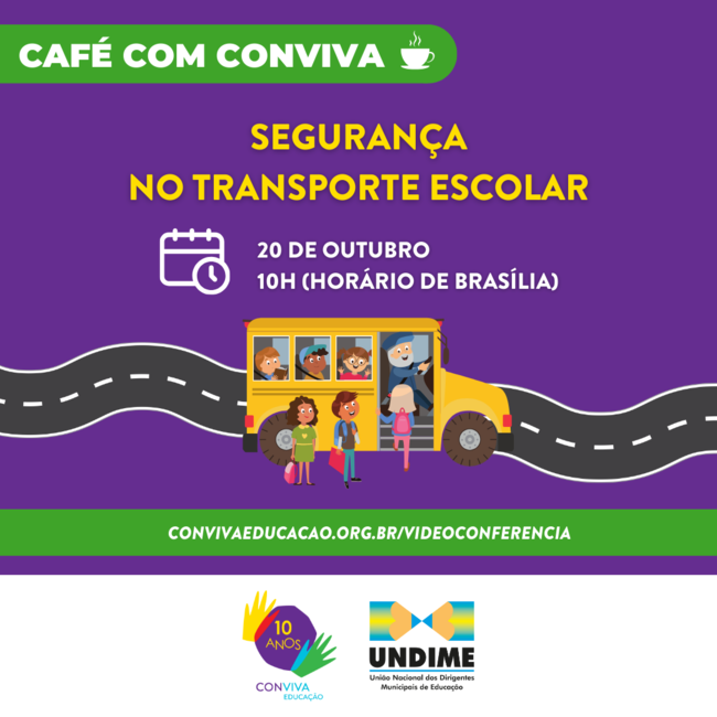 Nesta sexta-feira, dia 20 de outubro, o Conviva Educação promove mais uma edição do tradicional "Café com Conviva". A pauta da vez será: segurança no transporte escolar.