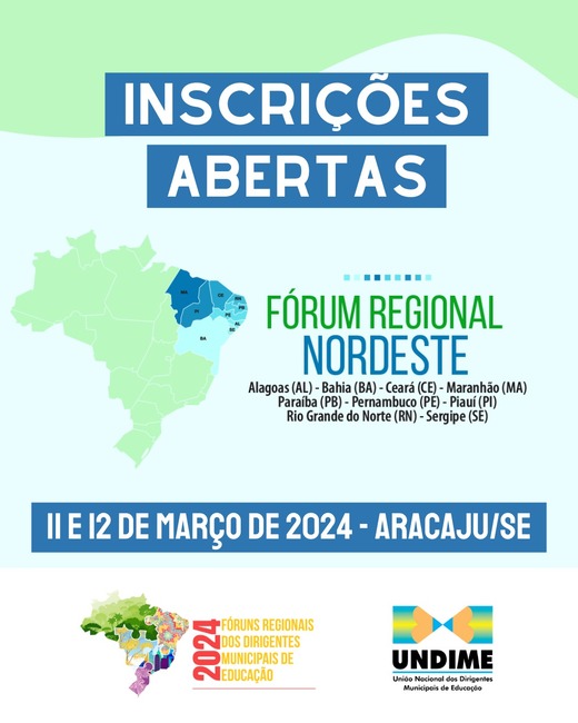 Caso algum município de outra região deseje participar do Fórum do Nordeste, é necessário que manifeste interesse por meio do e-mail: forunsnacionais@undime.org.br