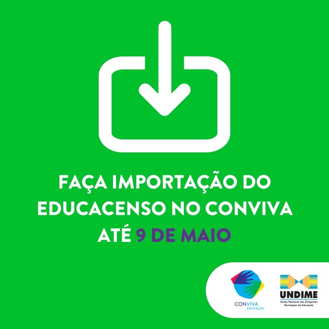 Nesta terça-feira, 12 de março, foi aberta a importação dos dados exportados do Educacenso para a plataforma Conviva Educação. Neste momento, os dados da Matrícula Inicial 2023 exportados do Educacenso poderão ser importadas para a plataforma Conviva até o dia 9 de maio.