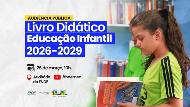 Na próxima terça-feira, 26 de março, o Fundo Nacional de Desenvolvimento da Educação (FNDE) e as secretarias de Educação Básica (SEB) e de Educação Continuada, Alfabetização, Diversidade e Inclusão (SECADI), do Ministério da Educação (MEC), irão realizar a Audiência Pública nº 01/2024, a fim de compartilhar as especificações técnicas do Edital de Convocação para o Programa Nacional do Livro e do Material Didático (PNLD) – Educação Infantil, ciclo 2026-2029. O evento ocorrerá às 10 horas, no Auditório Vander Oliveira Borges, na sede da autarquia, e contará com a presença das equipes técnicas do FNDE e do MEC, além de representantes do setor produtivo e da sociedade civil. Haverá também transmissão pelo Youtube.