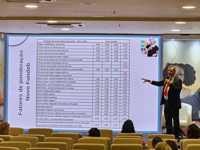 O presidente nacional da Undime, Alessio Costa Lima, Dirigente Municipal de Ibaretama/CE, participou do seminário como palestrante no Painel 4, na tarde da quarta-feira, 10 de abril. O tema abordado por ele foi "Seleção, concurso e formação de professores, alimentação escolar e transporte: impactos no orçamento".