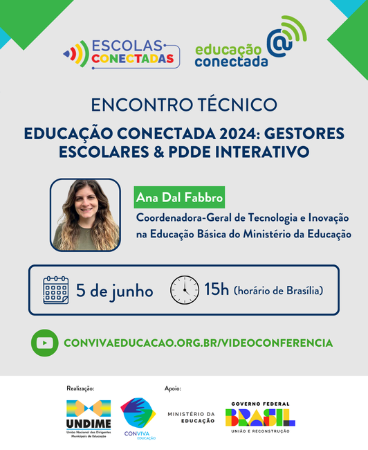O prazo para envio encerra no dia 14 de junho. Então, acompanhe o Encontro Técnico e aproveite para tirar todas as suas dúvidas, com a coordenadora-geral de Tecnologia e Inovação na Educação Básica do Ministério da Educação, Ana Dal Fabbro.