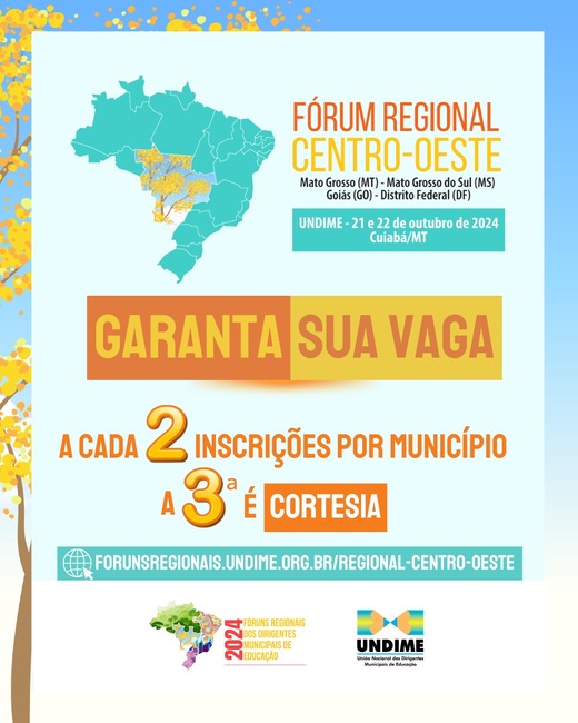 Para inscrever você e sua equipe, acesse https://forunsregionais.undime.org.br/regional-centro-oeste.
