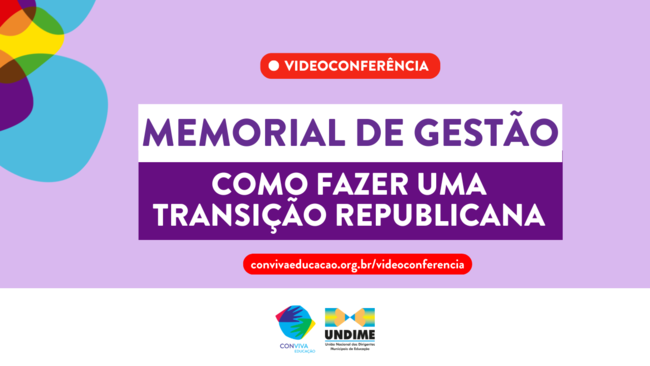 Na próxima quinta-feira, 17 de outubro, às 15h (horário de Brasília), a Undime realizará por meio do Conviva Educação videoconferência sobre o Memorial de Gestão, um documento que a Secretaria de Educação deve elaborar com informações sobre as ações realizadas até então para que sejam conhecidas pelos novos profissionais que vão assumir em 2025 e para que haja continuidade das políticas educacionais. Por isso, a proposta é conversar sobre essa temática e sobre como fazer uma transição republicana.