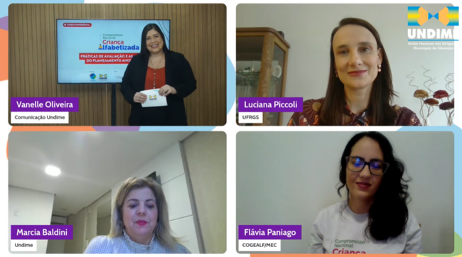 A convidada especial para falar sobre esse assunto foi a professora da Faculdade de Educação da Universidade Federal do Rio Grande do Sul, Luciana Piccoli. A colaboradora técnica da Coordenação-Geral de Alfabetização do Ministério da Educação, Flávia Cristina Paniago, também participou junto à coordenadora do Grupo de Trabalho de Alfabetização da Undime, Marcia Baldini, presidente da Undime Paraná e Dirigente Municipal de Educação de Cascavel/PR.